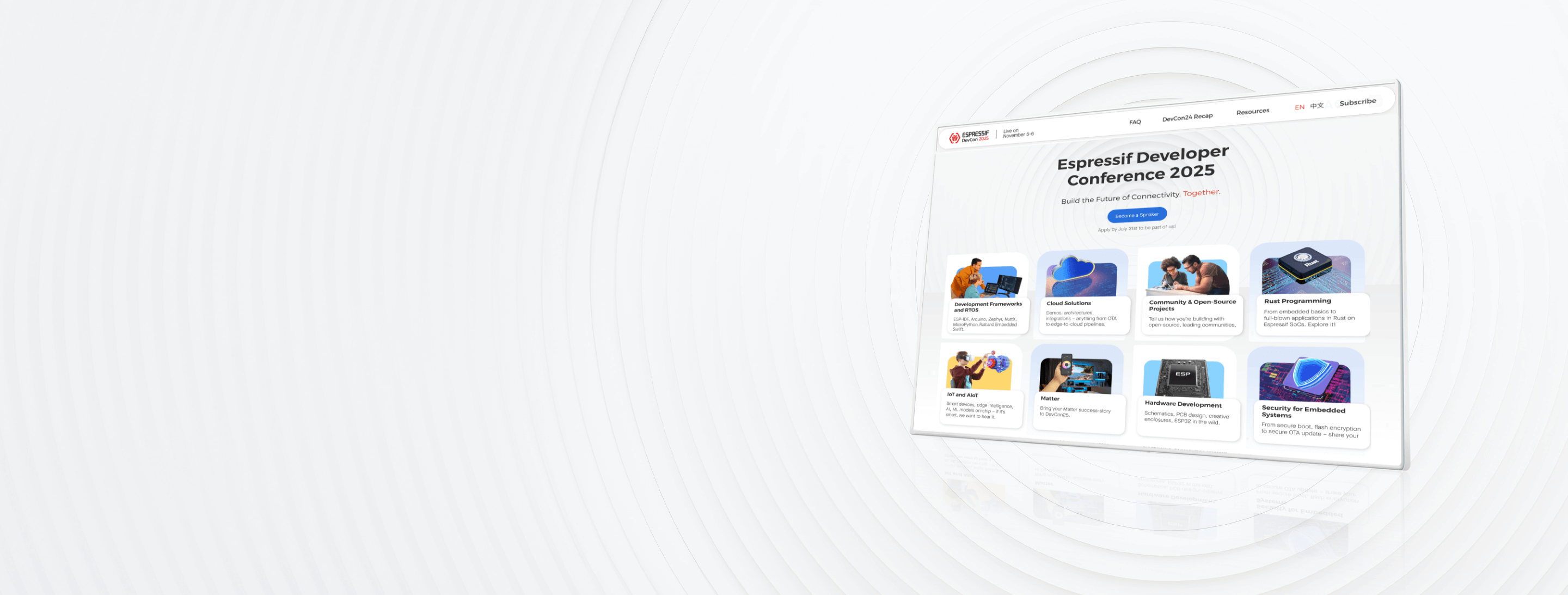 私たちは顧客と密接に協力しています。私たちの経験豊富なエンジニアが、実際の状況に応じて迅速で専門的なソリューションを提供し、プロジェクトの開発が順調に進行することを確保します。Espressif の現地サポートサービスは、プロジェクトの開発により集中することができます。